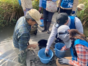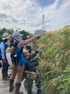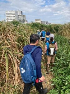 草はらと水辺の復元を行っている「NPO法人 ネイチャーリーダー江東」の皆さんと一緒に活動です。