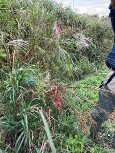 「ナンバンギセル」も発見。ススキやオギに寄生する在来植物で、寄生する植物があるところでしか見られない植物だそうです。