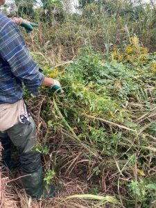 目についた「セイタカアワダチソウ」も駆除OK。これはできれば根から引っこ抜きたい植物です。