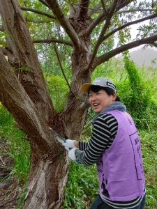 今回、樹木の枝払いと休憩ベンチづくりもおこないました。