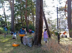 松葉かきは、熊手やほうきで松の葉を集める地道な作業ではありますが、やってみると意外に楽しい作業でもあります。