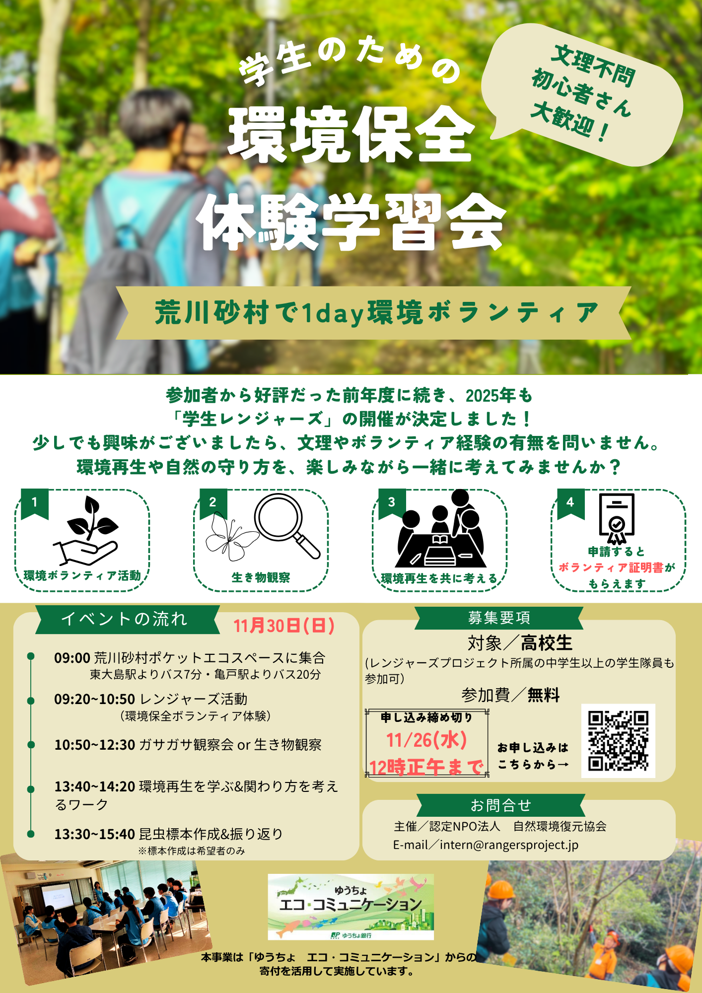 ★学生レンジャーズは「ゆうちょ エコ・コミュニケーション」からの寄付を活用して実施しています。